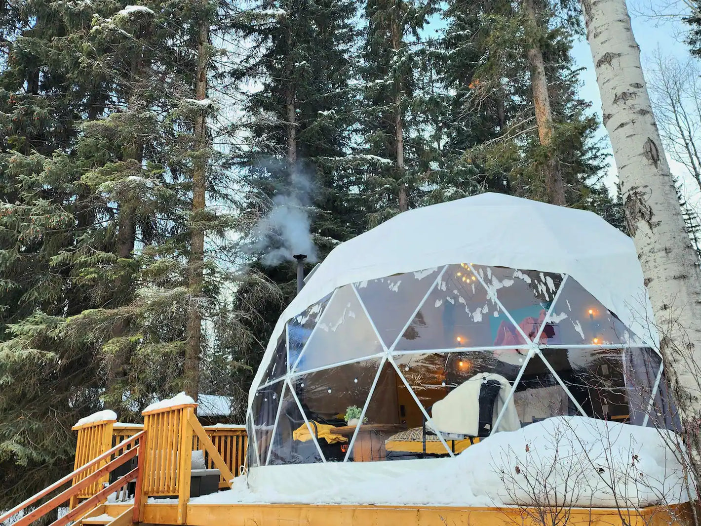 Depending on size, our Domes are capable of withstanding between 60-100psf snow load and up to 320km/h winds. These include a safety margin of 4x for human-occupied structures, so you can rest assured that they are more than capable of withstanding whatever adverse weather comes their way. We can also provide fire testing data, as well as stamped plans for exact-fit wooden platforms.