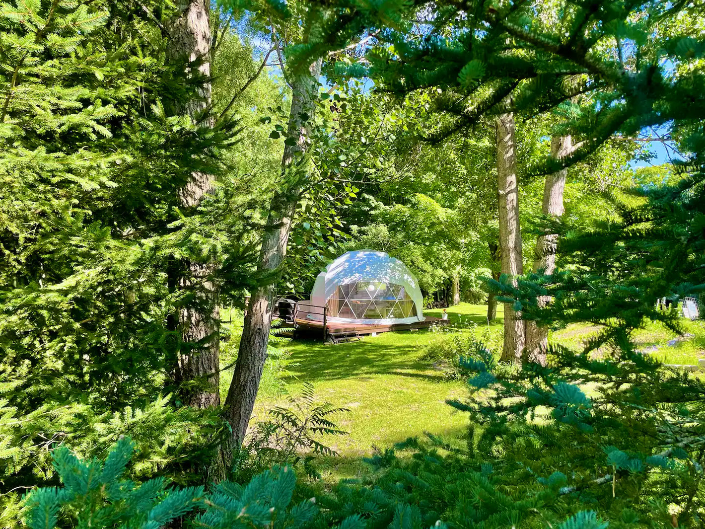 Experience our secluded stargazer dome, nestled among majestic maple trees on our sprawling 30-acre estate - an idyllic retreat.